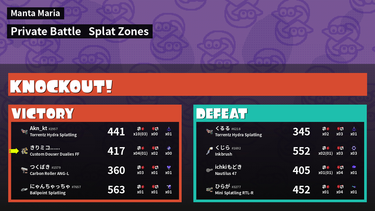 | Mode | Splat Zones - Private Battle | ||