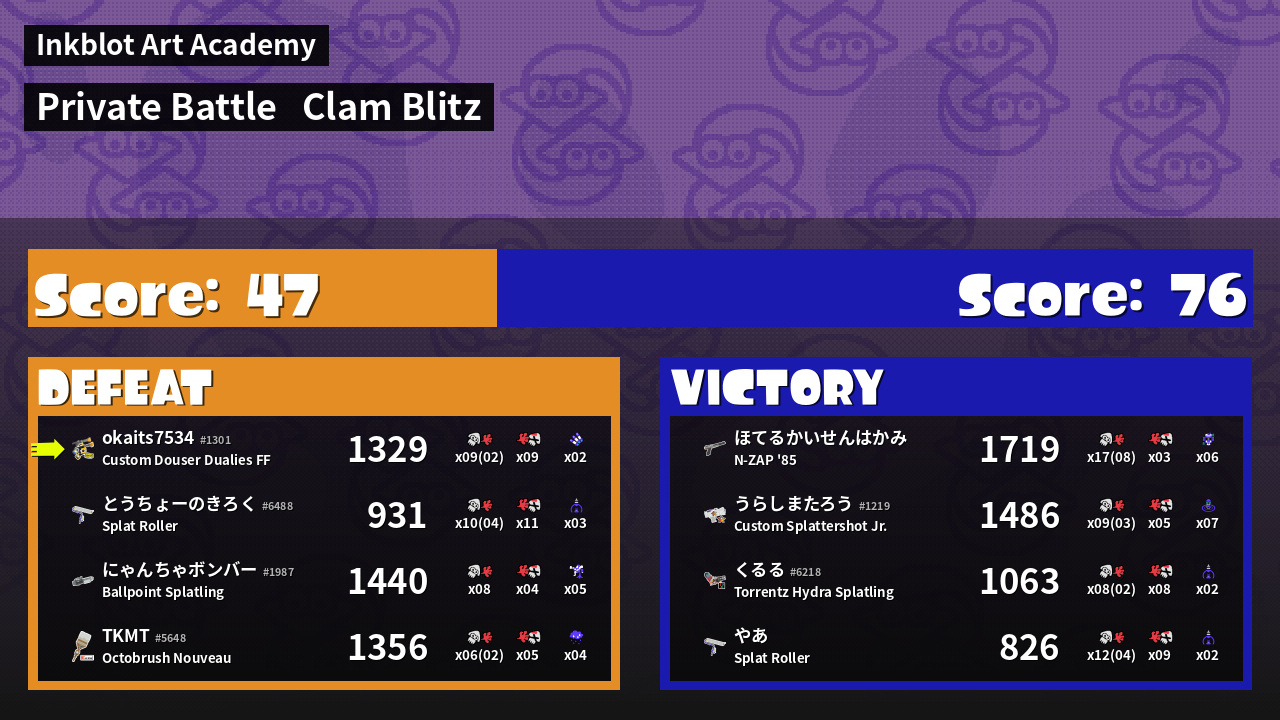 | Weapon | Custom Douser Dualies FF ( Burst Bomb / Triple Inkstrike) | ||