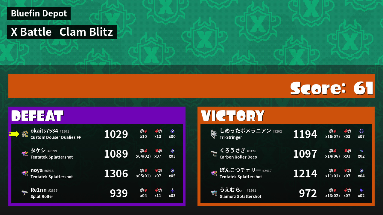 | Weapon | Custom Douser Dualies FF ( Burst Bomb / Triple Inkstrike) | ||