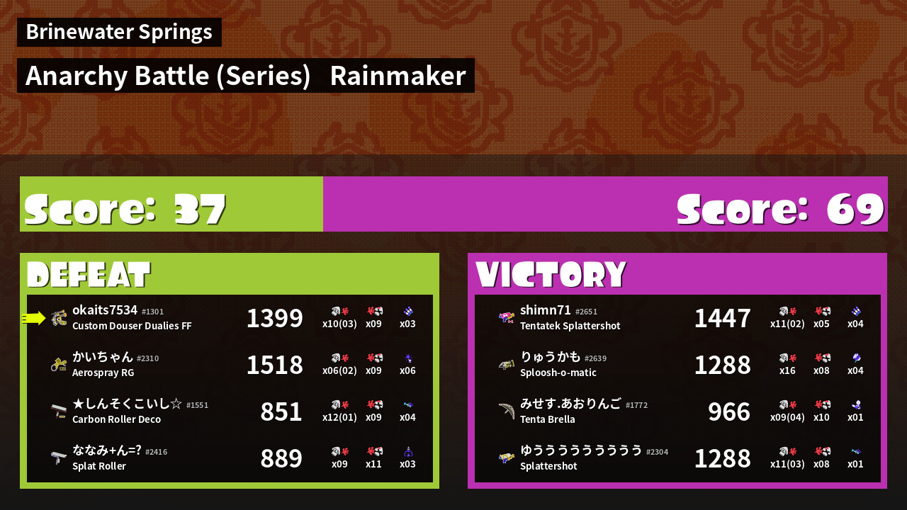| Weapon | Custom Douser Dualies FF ( Burst Bomb / Triple Inkstrike) | ||