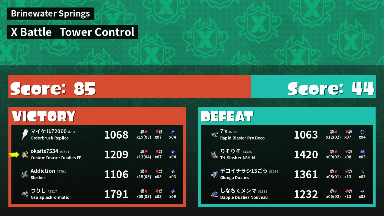 | Mode | Tower Control - X Battle | ||