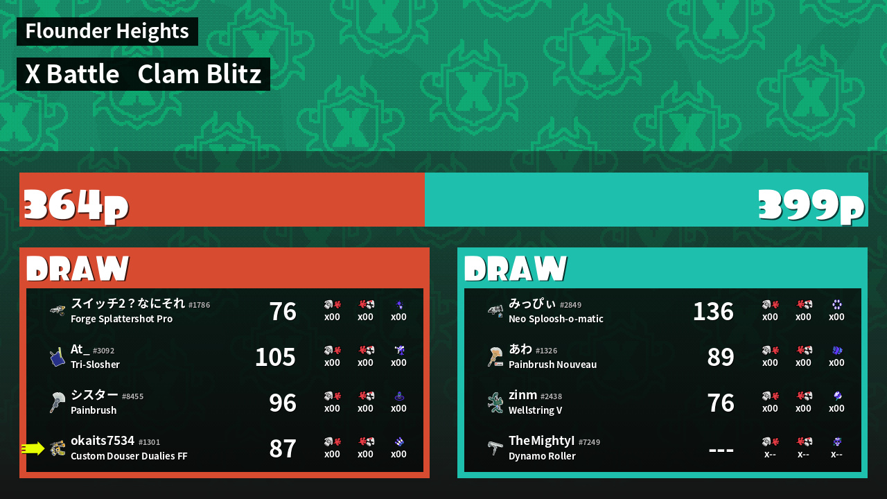 | Weapon | Custom Douser Dualies FF ( Burst Bomb / Triple Inkstrike) | ||