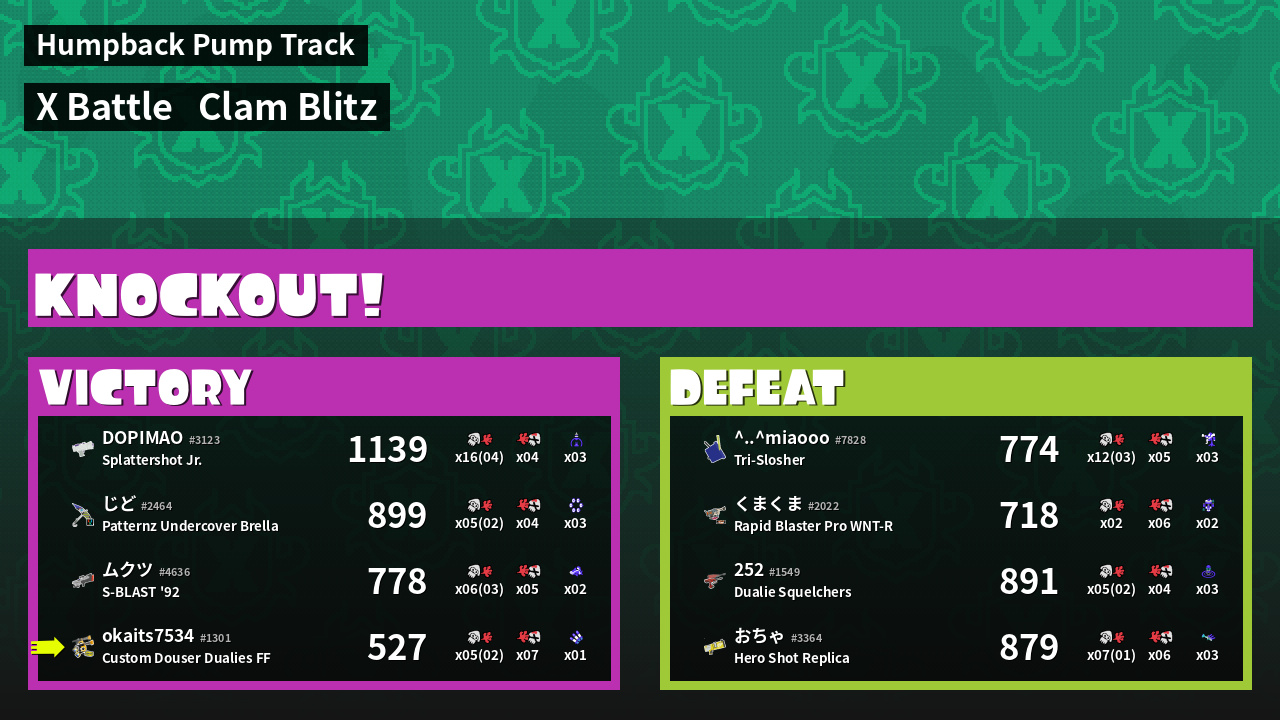 | Weapon | Custom Douser Dualies FF ( Burst Bomb / Triple Inkstrike) | ||
