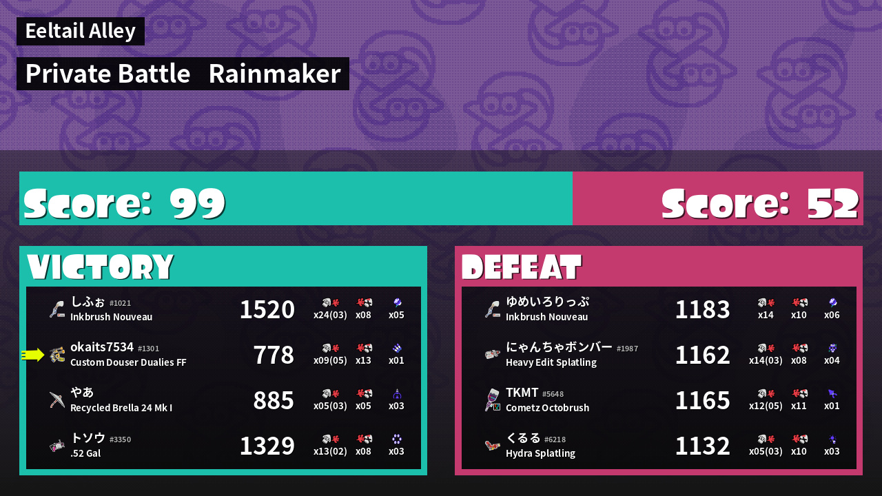 | Weapon | Custom Douser Dualies FF ( Burst Bomb / Triple Inkstrike) | ||