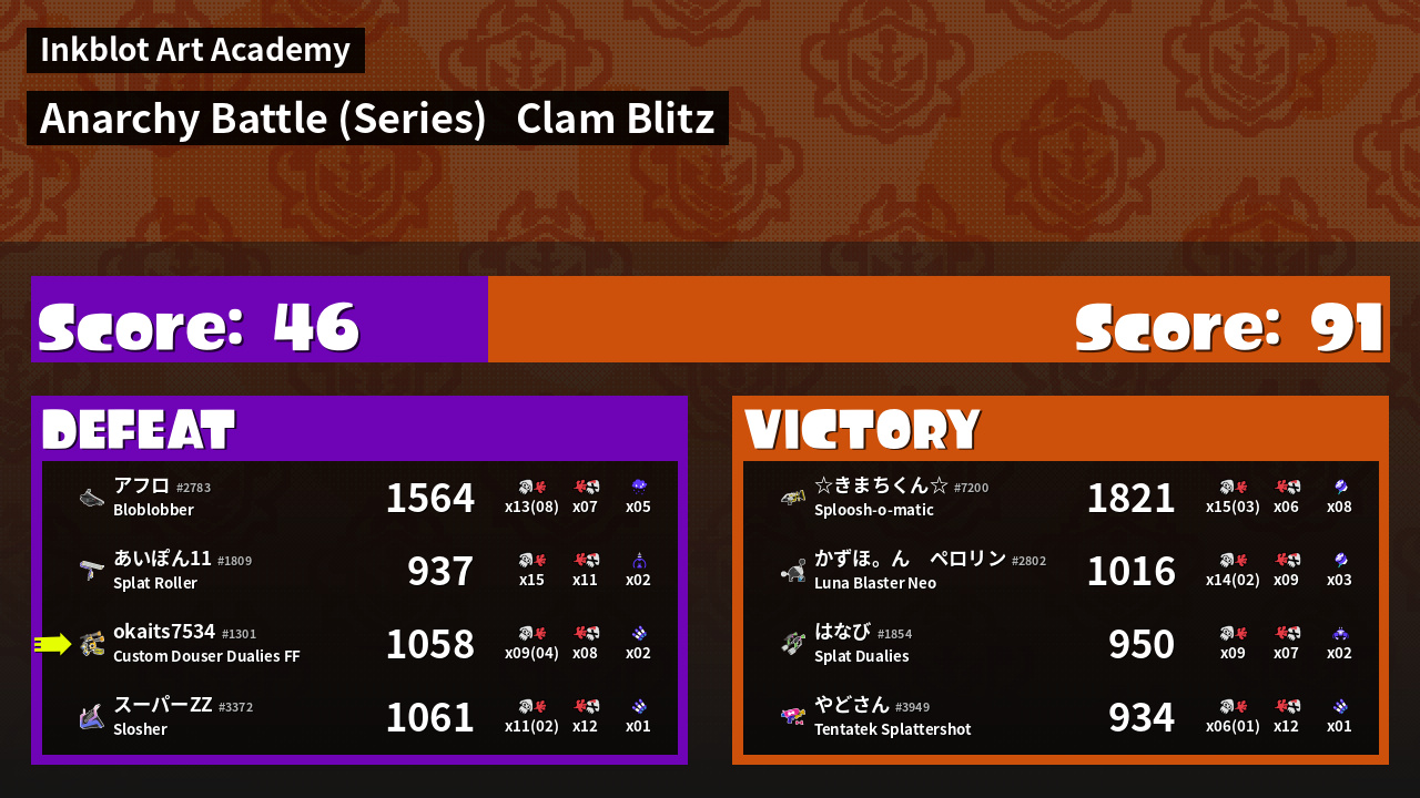 | Mode | Clam Blitz - Anarchy Battle (Series) | ||