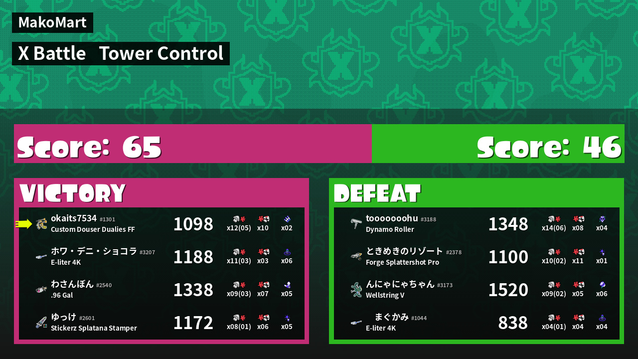 | Mode | Tower Control - X Battle | ||