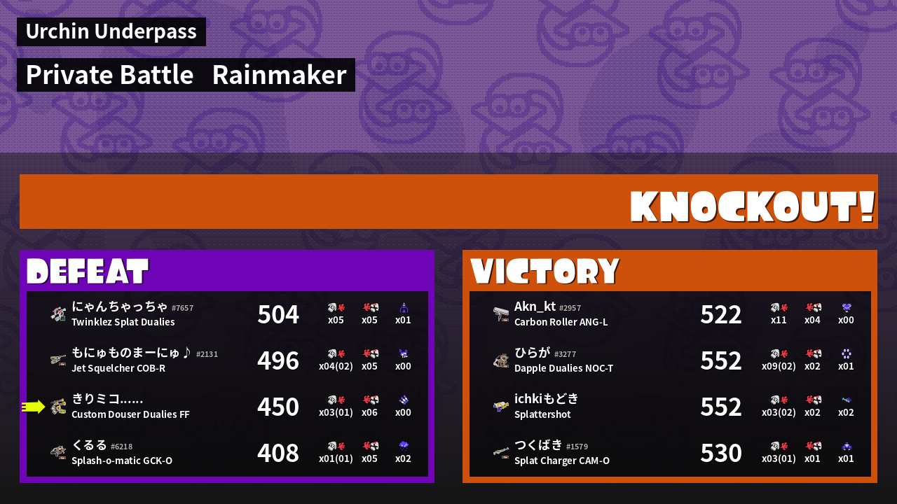 | Weapon | Custom Douser Dualies FF ( Burst Bomb / Triple Inkstrike) | ||