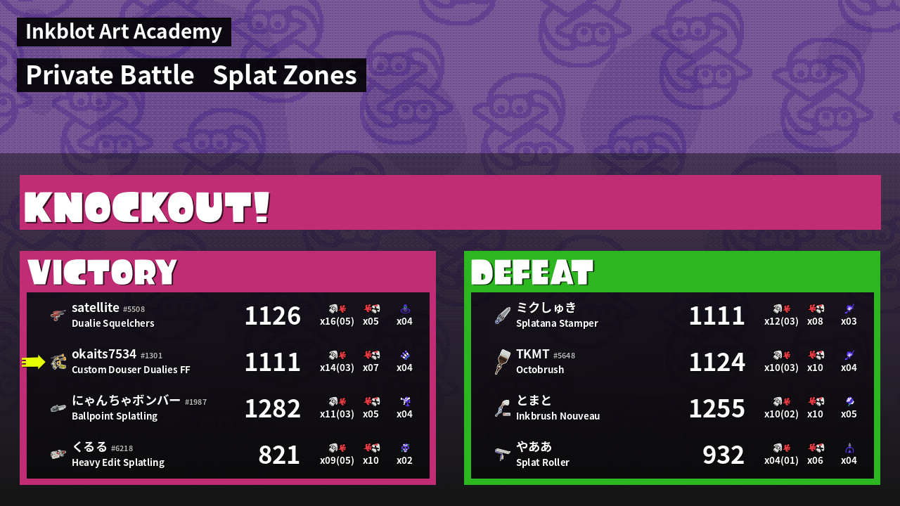 | Mode | Splat Zones - Private Battle | ||