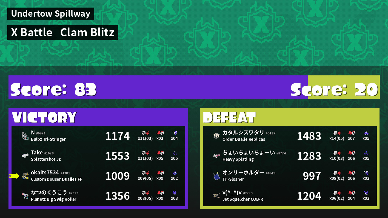 | Medals | #1 Score Booster #1 Clam Carrier #1 Splat Assister | ||