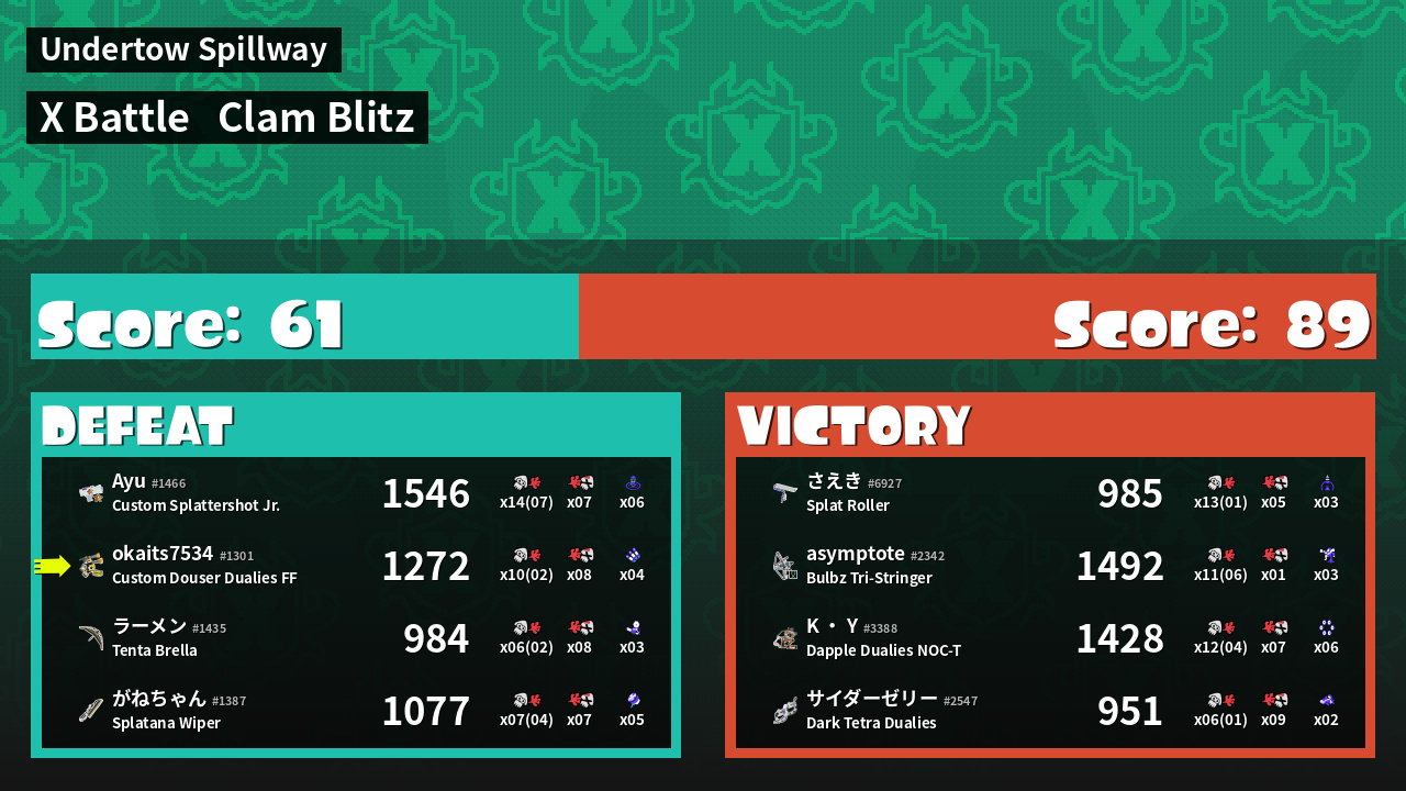 | Weapon | Custom Douser Dualies FF ( Burst Bomb / Triple Inkstrike) | ||
