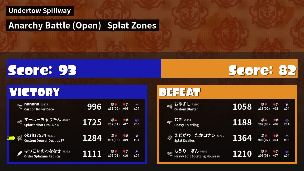 | Mode | Splat Zones - Anarchy Battle (Open) | ||
