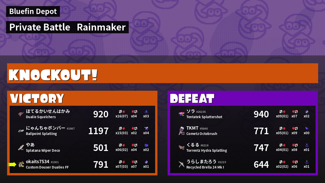| Weapon | Custom Douser Dualies FF ( Burst Bomb / Triple Inkstrike) | ||