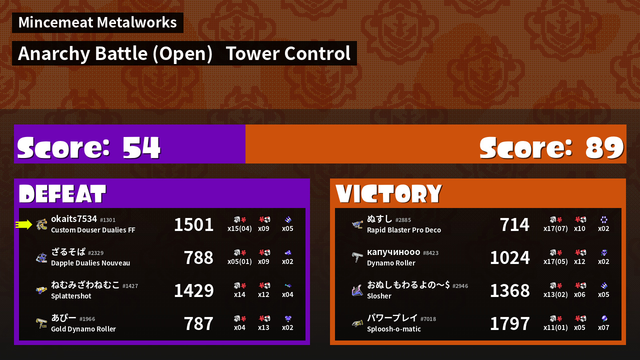 | Mode | Tower Control - Anarchy Battle (Open) | ||