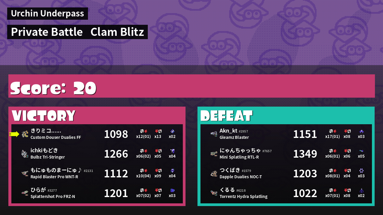 | Mode | Clam Blitz - Private Battle | ||