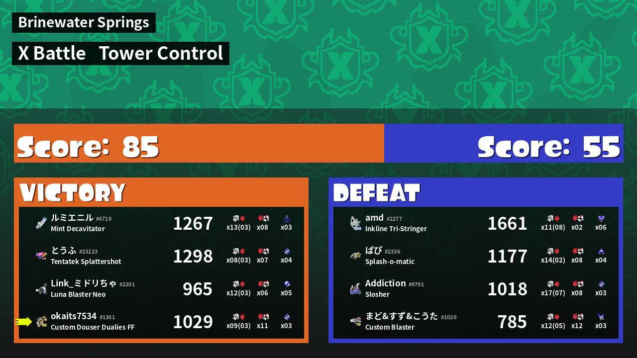 | Weapon | Custom Douser Dualies FF ( Burst Bomb / Triple Inkstrike) | ||