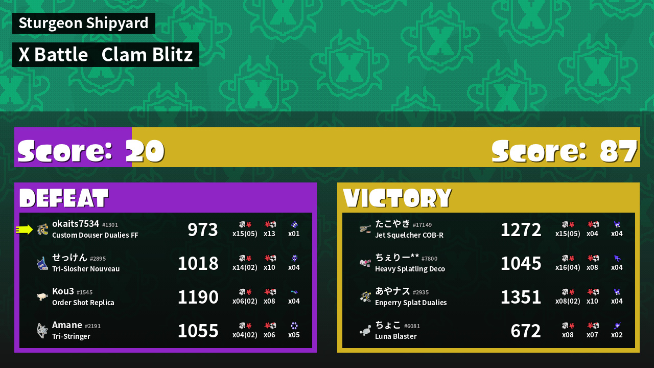 | Weapon | Custom Douser Dualies FF ( Burst Bomb / Triple Inkstrike) | ||
