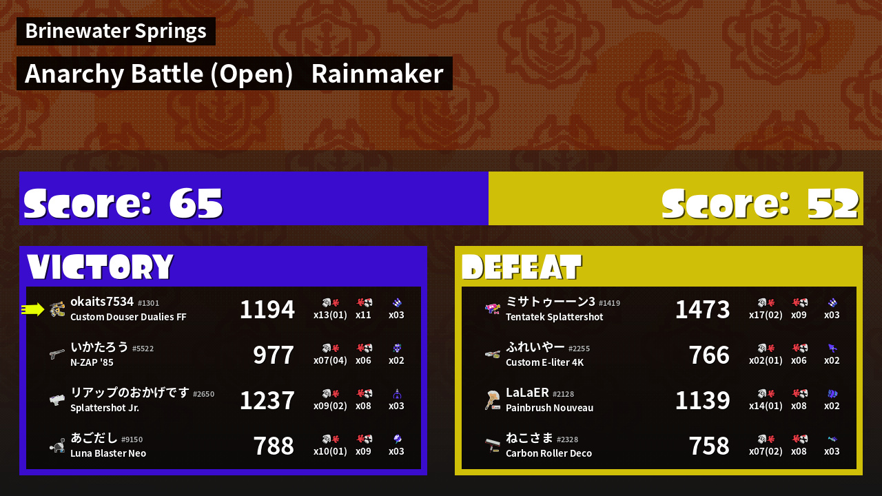 | Mode | Rainmaker - Anarchy Battle (Open) | ||