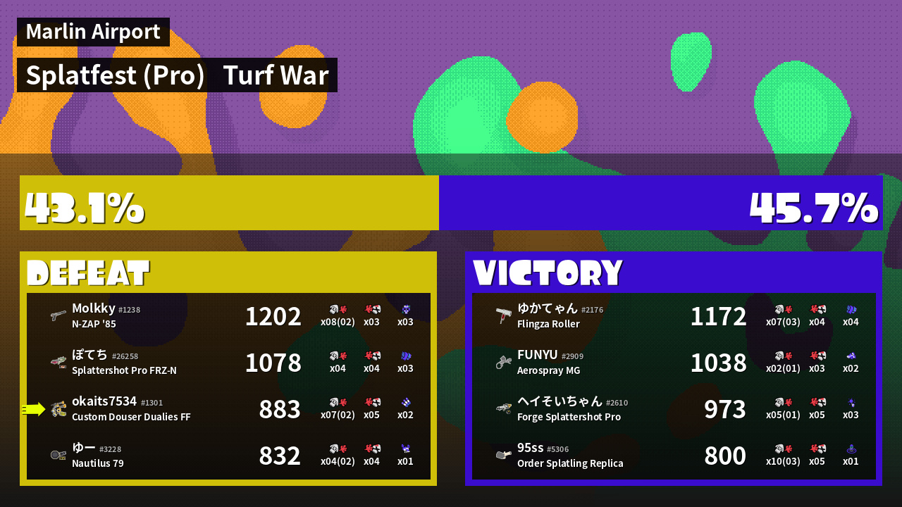 | Mode | Turf War - Splatfest (Pro) | ||