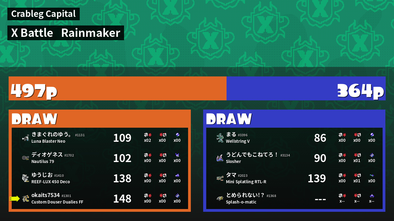 | Weapon | Custom Douser Dualies FF ( Burst Bomb / Triple Inkstrike) | ||