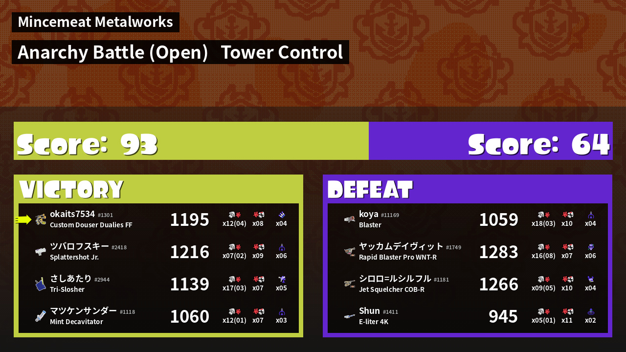 | Mode | Tower Control - Anarchy Battle (Open) | ||