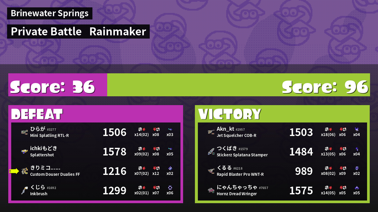 | Weapon | Custom Douser Dualies FF ( Burst Bomb / Triple Inkstrike) | ||