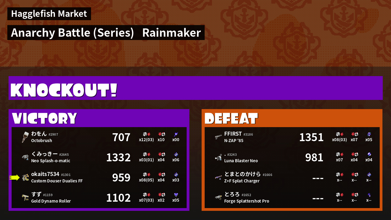 | Weapon | Custom Douser Dualies FF ( Burst Bomb / Triple Inkstrike) | ||