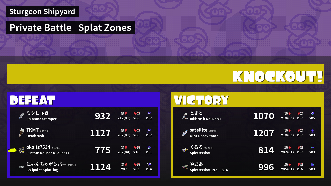 | Mode | Splat Zones - Private Battle | ||