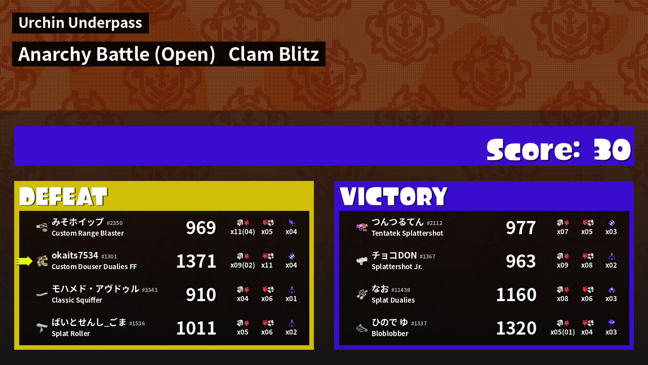 | Mode | Clam Blitz - Anarchy Battle (Open) | ||