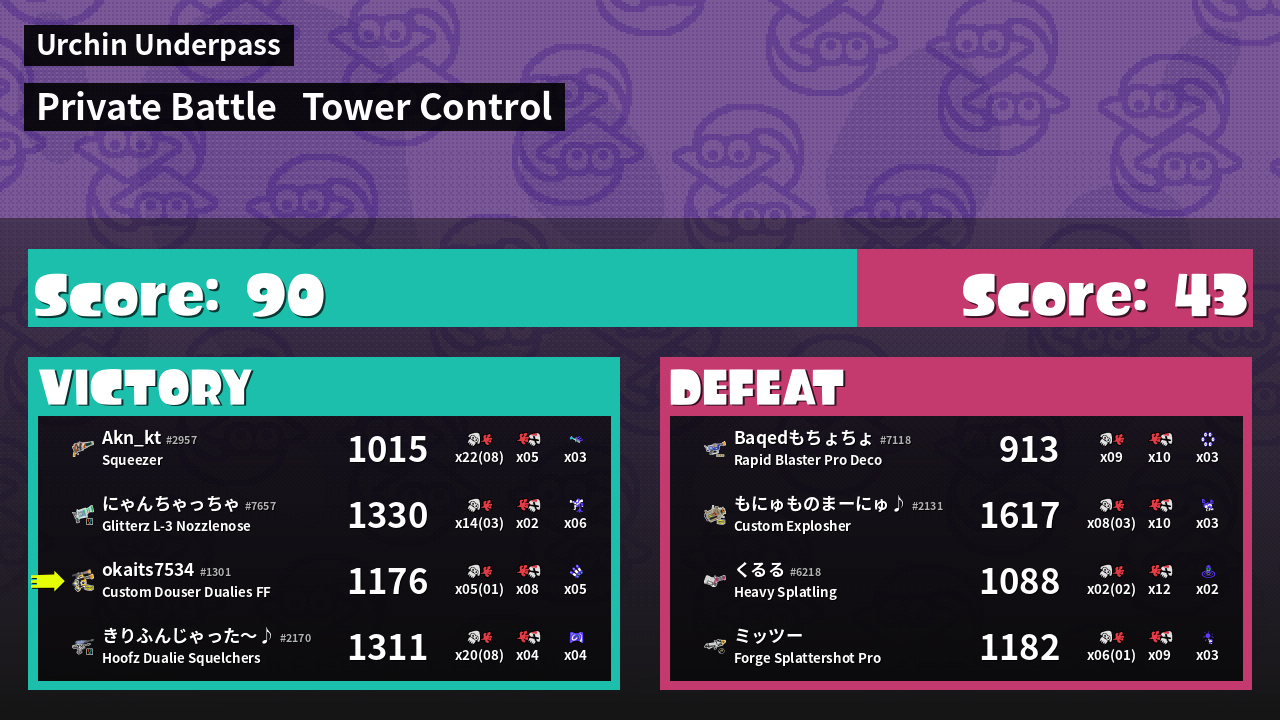 | Mode | Tower Control - Private Battle | ||
