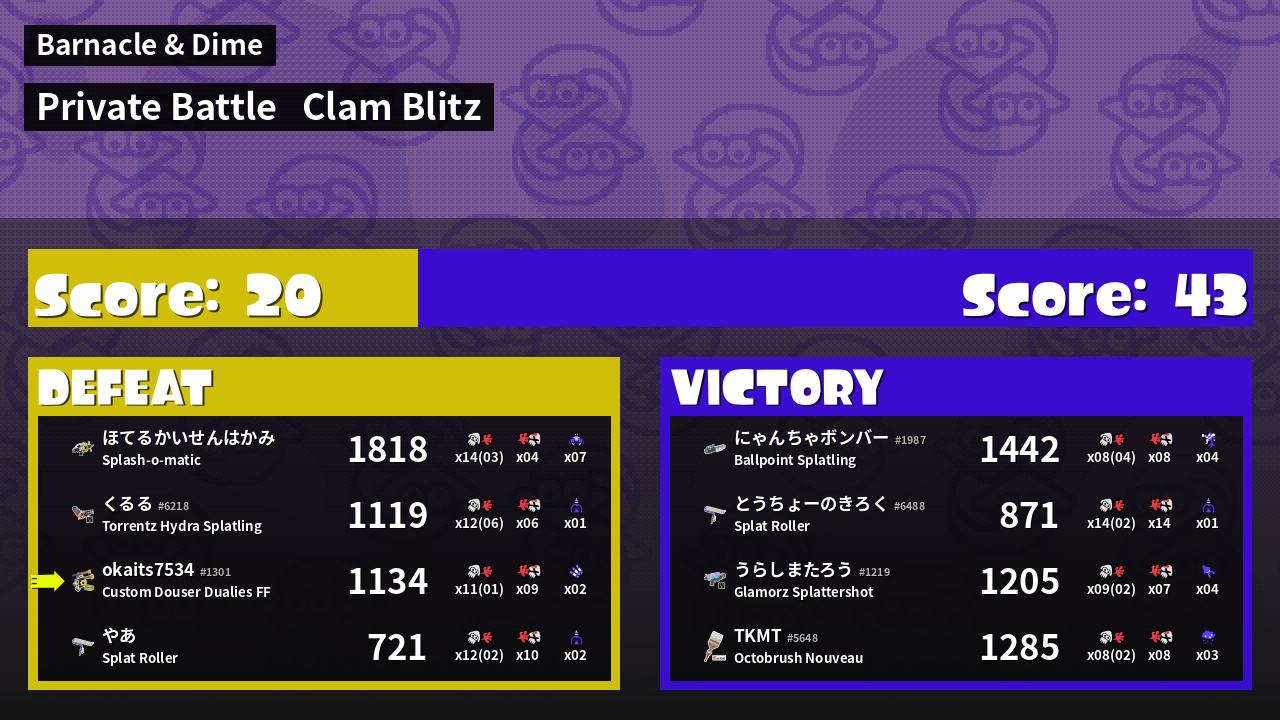 | Weapon | Custom Douser Dualies FF ( Burst Bomb / Triple Inkstrike) | ||