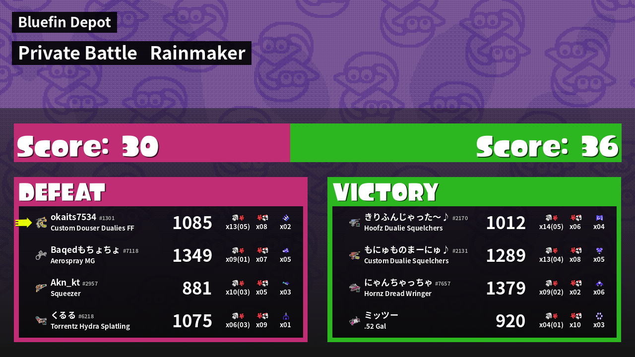 | Weapon | Custom Douser Dualies FF ( Burst Bomb / Triple Inkstrike) | ||