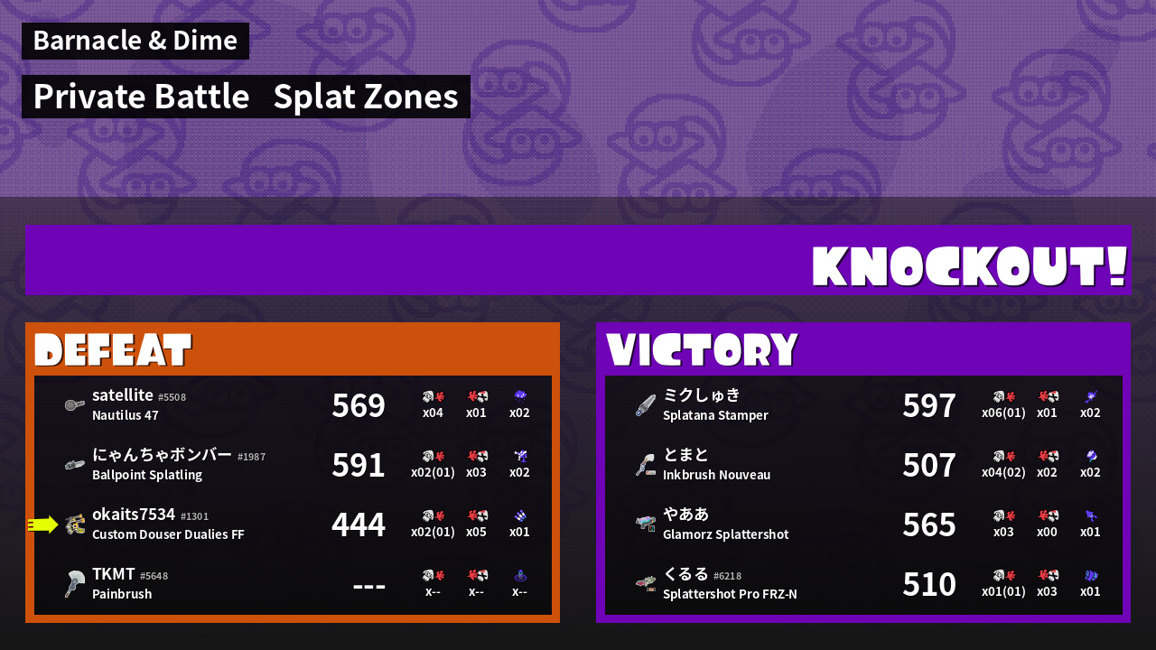 | Mode | Splat Zones - Private Battle | ||