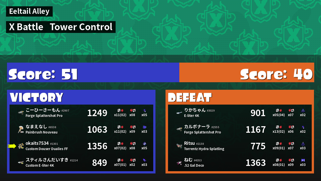 | Mode | Tower Control - X Battle | ||