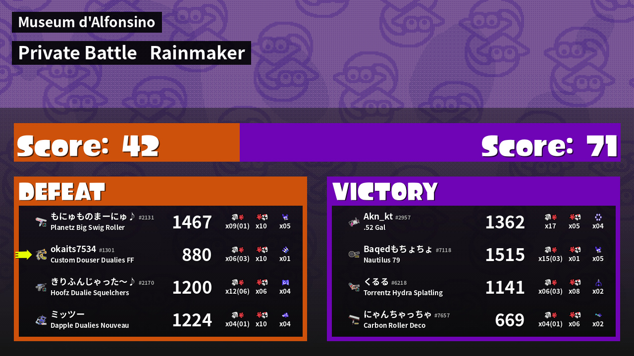| Weapon | Custom Douser Dualies FF ( Burst Bomb / Triple Inkstrike) | ||