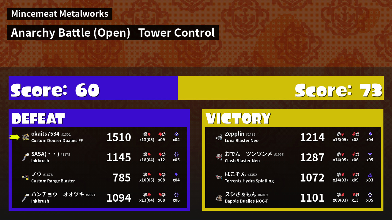 | Mode | Tower Control - Anarchy Battle (Open) | ||
