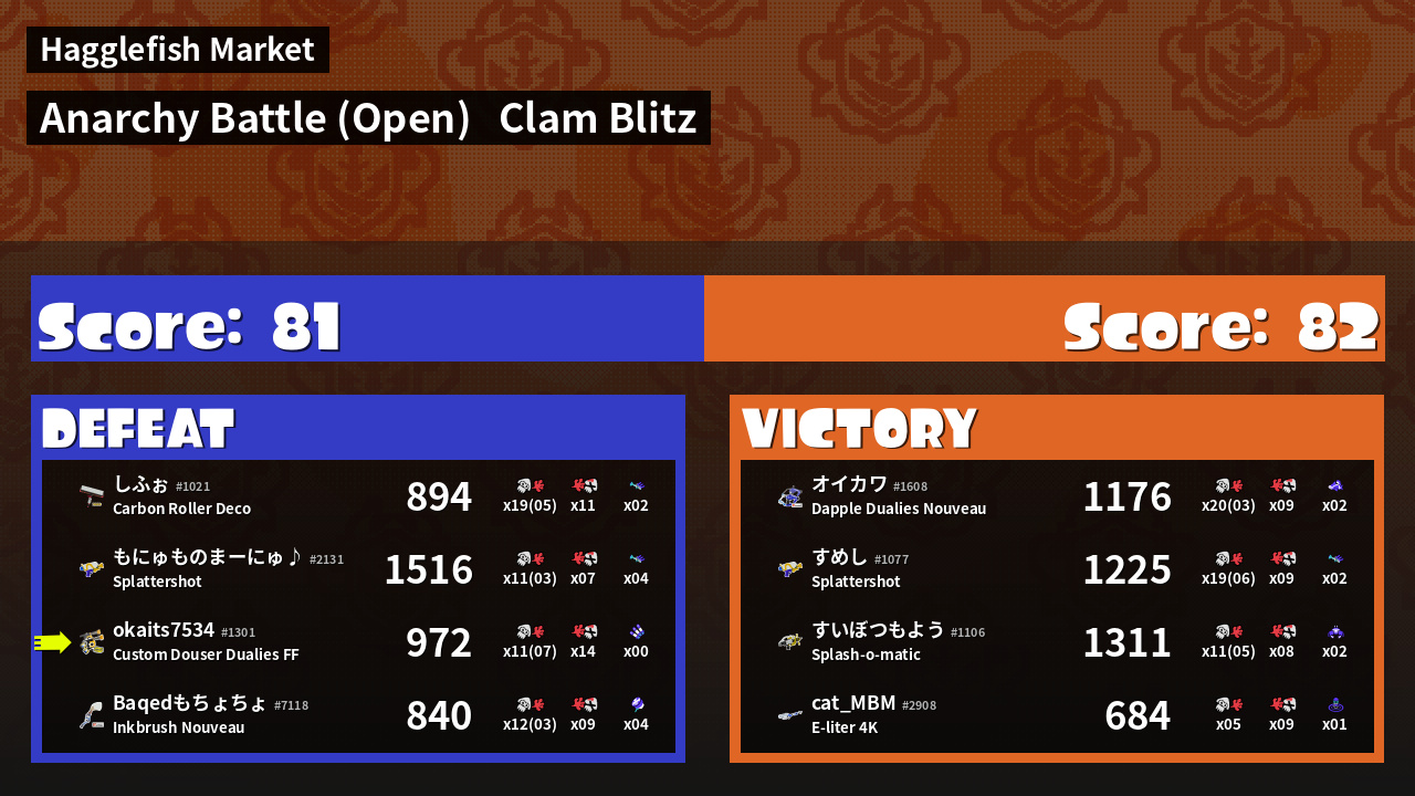 | Mode | Clam Blitz - Anarchy Battle (Open) | ||