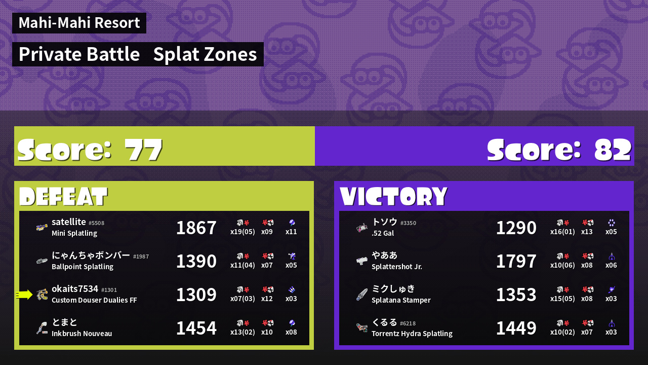 | Mode | Splat Zones - Private Battle | ||