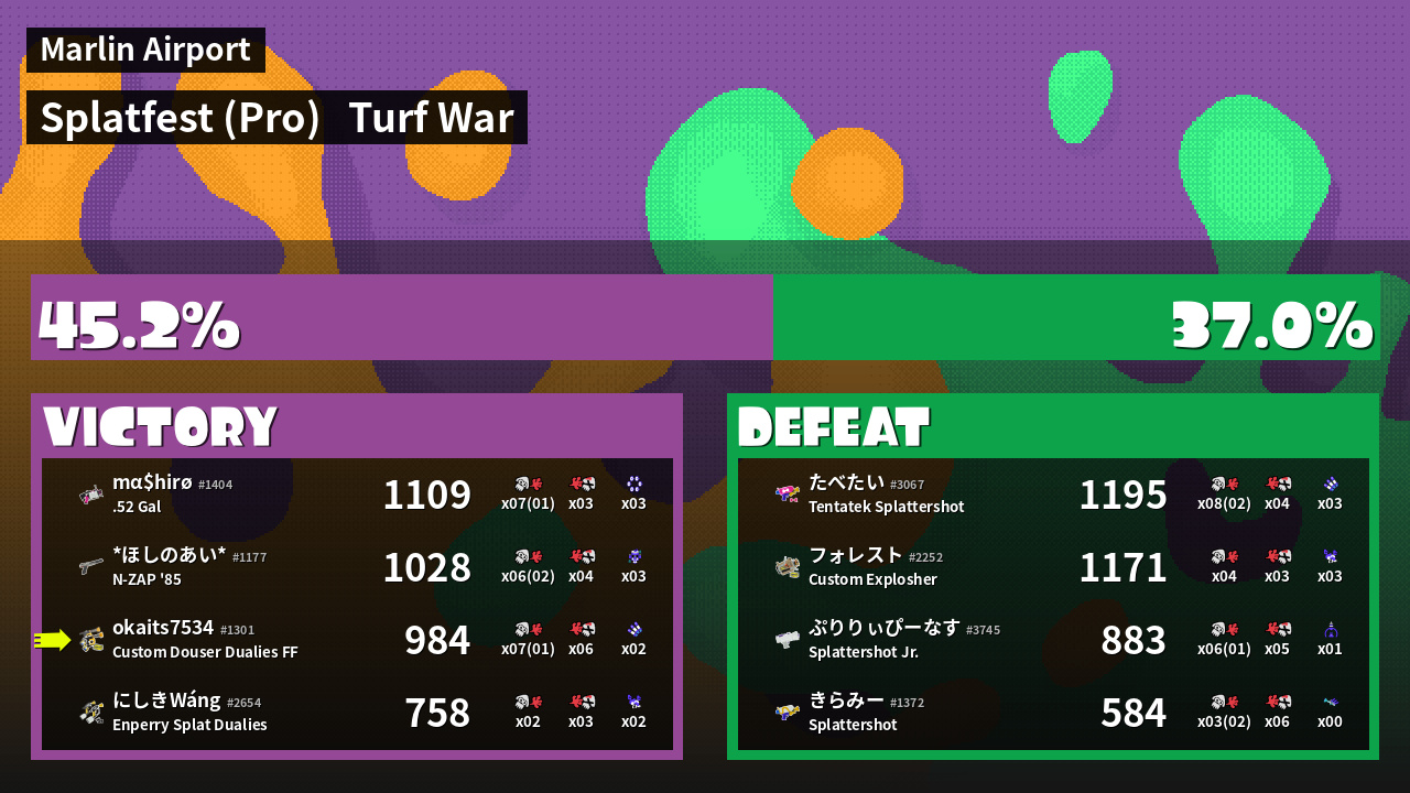 | Mode | Turf War - Splatfest (Pro) | ||