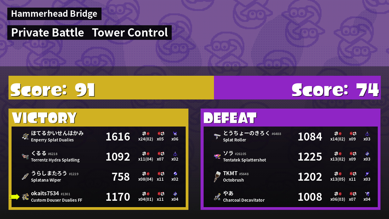 | Weapon | Custom Douser Dualies FF ( Burst Bomb / Triple Inkstrike) | ||
