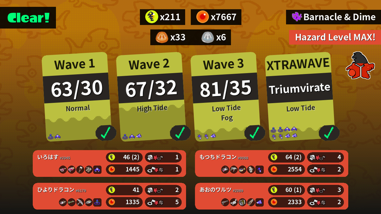 | Weapons | Rapid Blaster Pro Rapid Blaster Octobrush Grizzco Dualies | .52 Gal Grizzco Roller Mini Splatling Grizzco Stringer | N-ZAP '85 Luna Blaster Grizzco Slosher Grizzco Splatana | .96 Gal Bamboozler 14 Mk I Splat Brella Grizzco Brella |