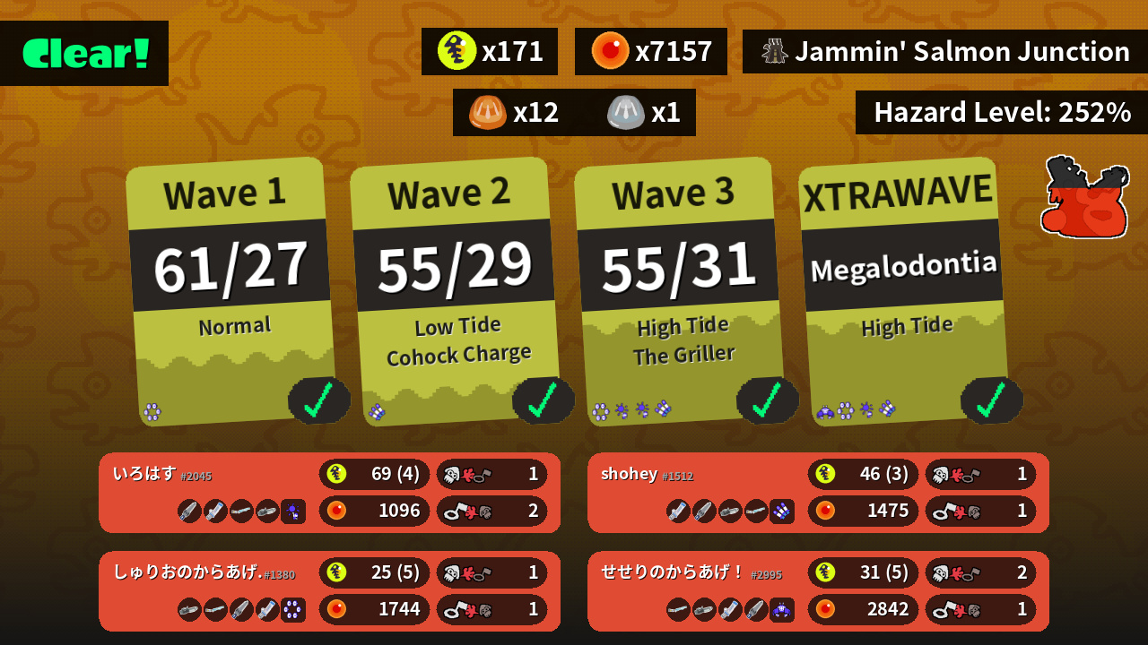 | Boss Salmonid | 13 | 15 | 25 | 21 |