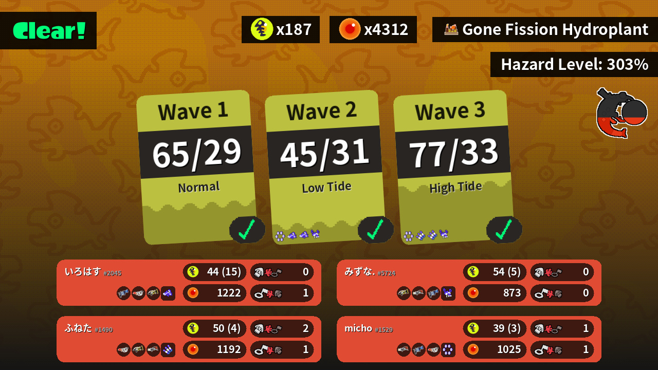 | Boss Salmonid | 20 | 28 | 20 | 17 |