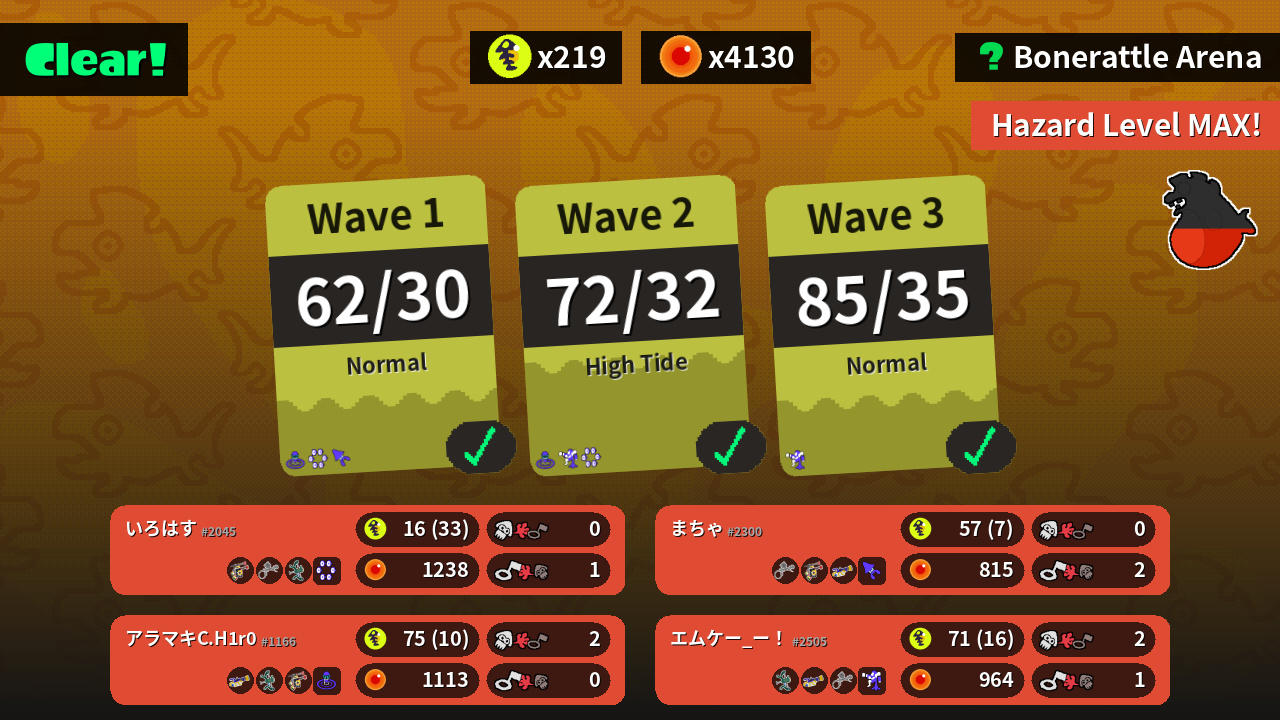| Boss Salmonid | 27 | 18 | 13 | 25 |