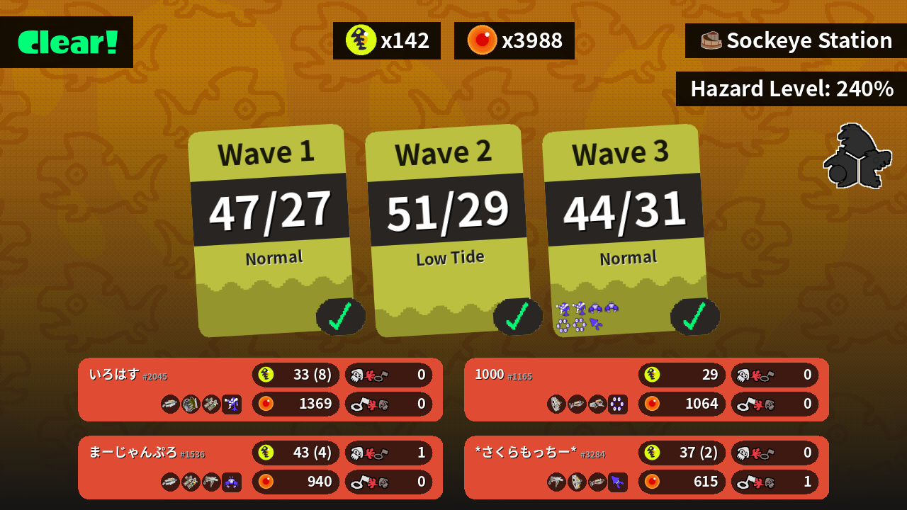 | Weapons | Grizzco Brella Grizzco Slosher Grizzco Dualies | Grizzco Brella Grizzco Dualies Grizzco Roller | Grizzco Roller Grizzco Stringer Grizzco Charger | Grizzco Stringer Grizzco Charger Grizzco Blaster |
