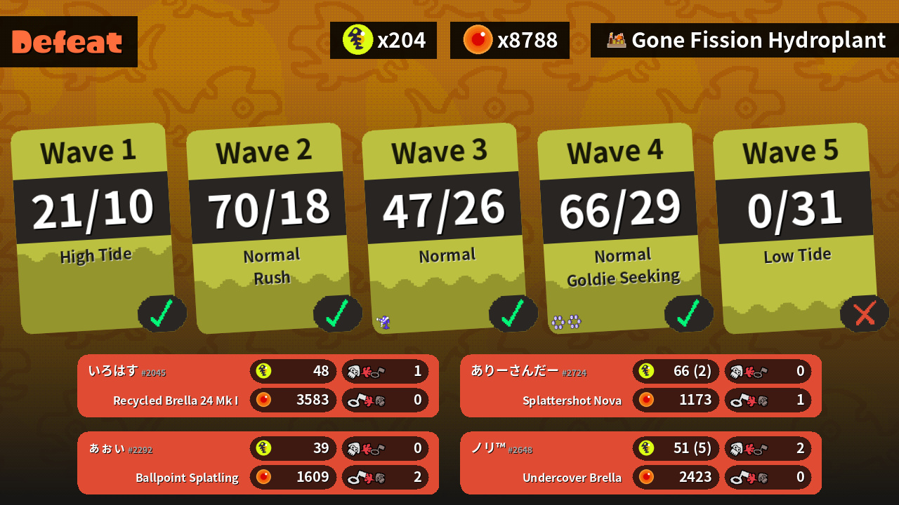 | Boss Salmonid | 16 | 11 | 18 | 16 |