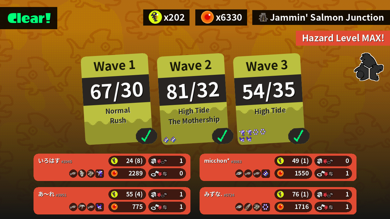 | Weapons | Grizzco Charger Grizzco Stringer Grizzco Dualies | Grizzco Brella Grizzco Splatana Grizzco Dualies | Grizzco Charger Grizzco Roller Grizzco Charger | Grizzco Brella Grizzco Charger Grizzco Charger |