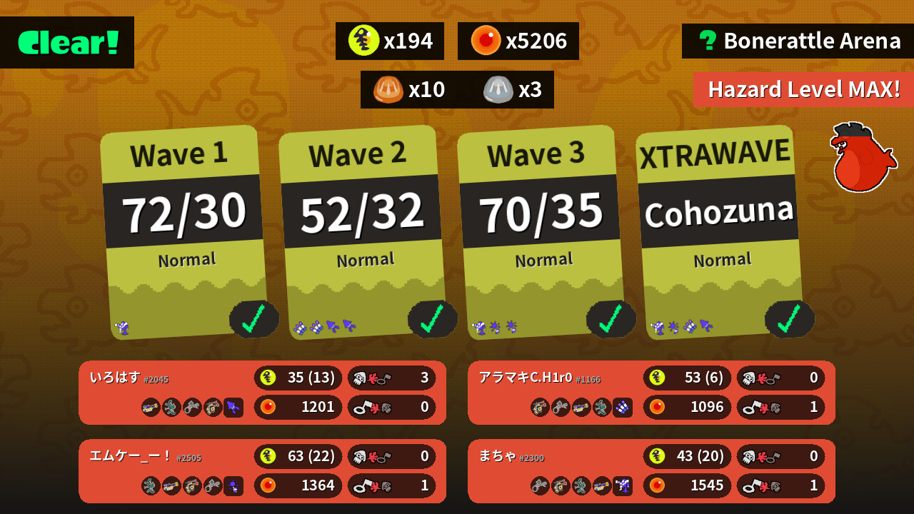 | Weapons | Mini Splatling Wellstring V Aerospray MG Douser Dualies FF | Wellstring V Mini Splatling Douser Dualies FF Aerospray MG | Douser Dualies FF Aerospray MG Mini Splatling Wellstring V | Aerospray MG Douser Dualies FF Wellstring V Mini Splatling |