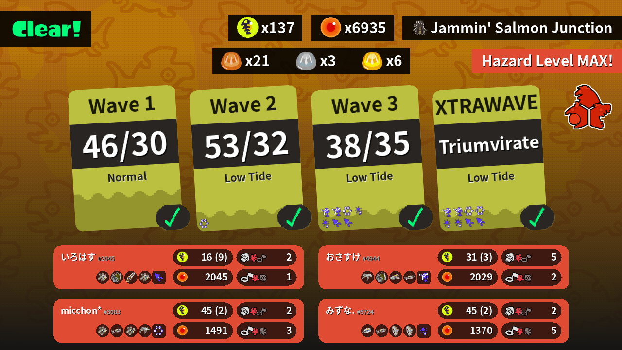 | Weapons | Grizzco Dualies Grizzco Slosher Grizzco Splatana Grizzco Dualies | Grizzco Dualies Grizzco Charger Grizzco Dualies Grizzco Roller | Grizzco Brella Grizzco Charger Grizzco Stringer Grizzco Stringer | Grizzco Roller Grizzco Slosher Grizzco Blaster Grizzco Charger |