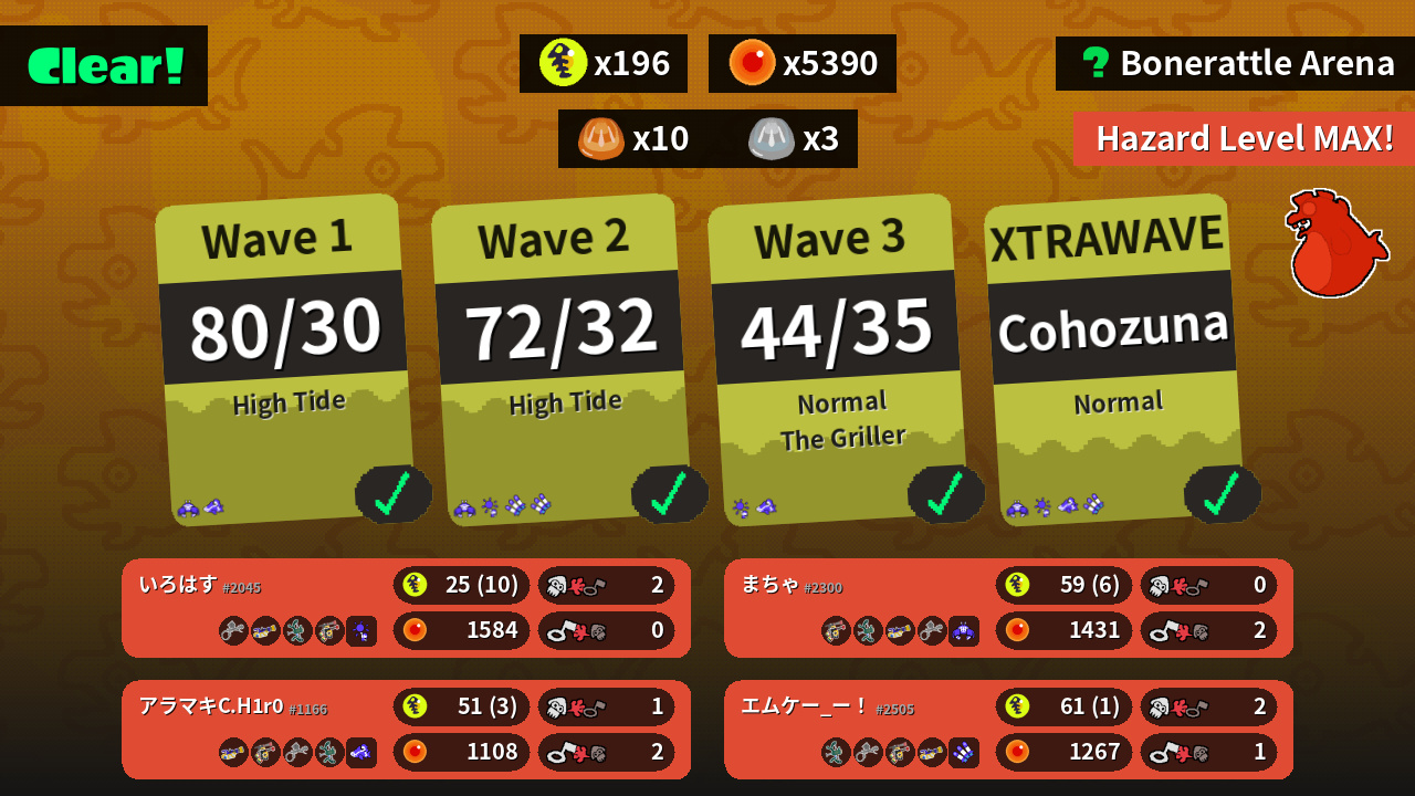 | Weapons |  Aerospray MG  Mini Splatling  Wellstring V  Douser Dualies FF |  Wellstring V  Aerospray MG  Douser Dualies FF  Mini Splatling |  Douser Dualies FF  Wellstring V  Mini Splatling  Aerospray MG |  Mini Splatling  Douser Dualies FF  Aerospray MG  Wellstring V |