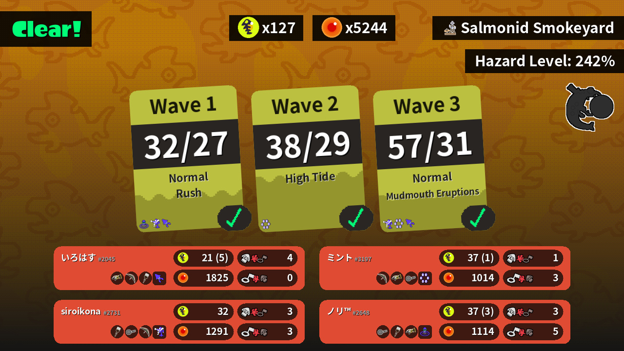 | Weapons | Sploosh-o-matic Tenta Brella Octobrush | Nautilus 47 Octobrush Sploosh-o-matic | Tenta Brella Sploosh-o-matic Nautilus 47 | Octobrush Nautilus 47 Tenta Brella |